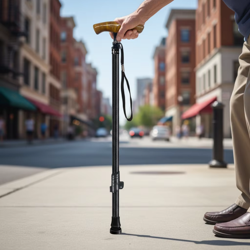 - Premium Carbon Fiber Material: Lightweight yet sturdy walking cane, made of high-strength carbon fiber tube for durability and long-term use, easy to carry without fatigue.